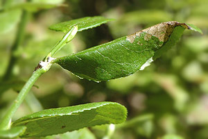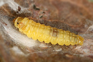 Die Raupe lebt in Blatttüten von Vaccinium uliginosum und Vaccinium myrtillus, die von innen her befressen werden.