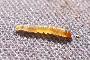 Kennel (1921: 668) trug zusammen: "Die Raupe ist weiß mit blassen, nur bei Vergrößerung sichtbaren Punkten. Kopf hellbraun. Nackenschild gelblichbraun, Analklappe kaum angedeutet; sie lebt von August bis März an Populus tremula in den von dem Käfer Saperda populnea veranlaßten Zweiganschwellungen."