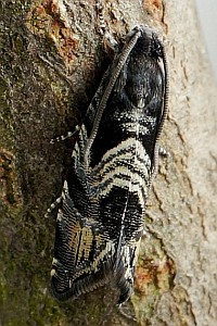 Man kann Raupen und Puppen im Winter eintragen. Man bricht die besagten Zweige in Menge ab, bewahrt sie in einem Glas auf und erhält im Frühjahr den Falter. [Friedmar Graf]