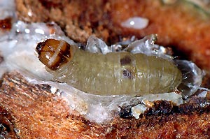 Müller-Rutz (1922: 233) berichtete aus der Schweiz: "In einer jungen Fichtenpflanzung bei Schuls 1920 schädlich auftretend; die Raupen im April in Stämmen und Zweigen".