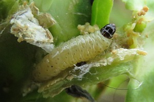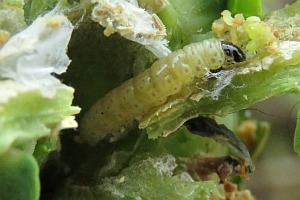 Kennel (1921: 667) notierte zu "Laspeyresia leplastriana Curt.": "Die Raupe von Lasp. leplastriana ist grauweißlich, der Kopf schwarz, Nackenschild schwarzbraun; sie lebt im September in Stengeln der wilden Form von Brassica oleracea (Meyrick)."