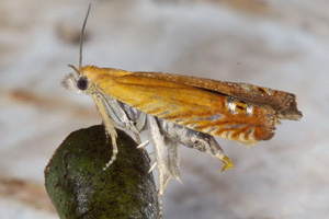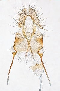Diesem Antrag von Hill (2019) sind noch weitere interessante Details zu entnehmen: "Olsen et al. (2014) found Lathronympha strigana to be the most abundant moth species collected on Hypericum in Spain in spring 2013. They commonly observed feeding on the young shoot tips of tutsan, tying together unexpanded leaves and boring into soft stems. Larvae were also collected in July in Delémont, Switzerland from tied flower buds of H. hirsutum and H. perforatum. Two sites in Georgia were visited in June 2013 and 2014. L. strigana was abundant, but unlike most observations in western Europe, the larvae were feeding on the flesh and undeveloped seeds of fruits of H. androsaemum, not on the leaves. The dominant plant species present at the two sites were H. inodorum and H. perforatum, while H. androsaemum was considered to be uncommon (D. Karazishvilli, pers. comm. to H. Gourlay). However, Lathronympha strigana was found only on H. androsaemum plants with very minor spill-over attack on other Hypericum species. Fruit feeding by L. strigana is considered rare in western Europe and no descriptions of larvae boring into individual fruits (as observed in Georgia) have been found. There was no evidence of such fruit boring observed in Spain in June 2012 or August 2013 (Olsen et al. 2014). This apparent difference in the feeding niche and host preference of L. strigana between Georgia and Spain raised the possibility of a biotype specialising on tutsan in Georgia. DNA analysis indicated no difference in molecular biology between L. strigana reared from different plant parts (within region), but clear separation at the sub-specific level between individuals sourced from Spain and Switzerland and those sourced from Georgia, confirming the existence of a biotype (Olsen et al. 2014)."