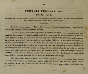 - Beschreibung als Tortrix fulvana: Fischer von Röslerstamm, J. E. (1834–1843): Abbildungen zur Berichtigung und Ergänzung der Schmetterlingskunde besonders der Microlepidopterologie als Supplement zu Treitschke's und Hübner's europaeischen Schmetterlingen, mit erlaeuterndem Text: I-V, 6-304, Alphabetisches Register mit Synonymen [i]-[iv], pl. 1-100. Leipzig (Hinrichs). — Digitalisat von Google Books im Viewer der Hathi Trust Digital Library: [35], [pl. 20 mit fig. 3].