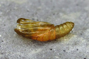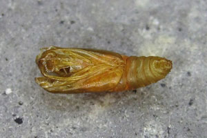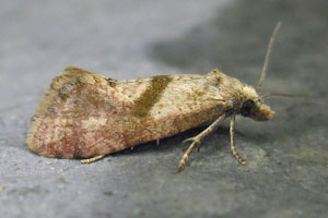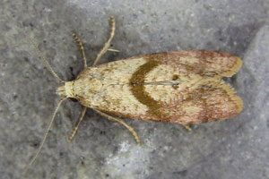 Kennel (1913: 255) trug zusammen: "Die Raupe ist blaßgelb, der Kopf hellbraun, das Nackenschild gelb, hinten mit zwei schwarzen Flecken. Sie lebt vom September bis zum Frühling, in zweiter Generation im Juni und Anfang Juli in Blüten, Samen und Stengel von Matricaria, Anthemis, Solidago, Achillea, Chrysocoma, Gnaphalium, Tanacetum. Nach Meyrick sollen in England außer der überwinternden Herbstgeneration noch zwei Sommergenerationen von Raupen einander folgen, eine im Juni, die andere im August."