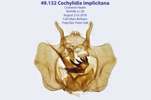 Die Art hat eine taxonomische Irrfahrt hinter sich - Vermengung mit C. heydeniana einerseits, dann mit C. moguntiana und ihren Synonymen andererseits. Dazu kommen wohl auch noch ein paar "normale" Fehlbestimmungen. Die Liste der "Futterpflanzen" in der Literatur ist lang - aber sie ist nicht leicht zu intepretieren. C. moguntiana lebt an Artemisia campestris, C. heydeniana an Erigeron acris - doch Schütze (1931: 180) nennt keine dieser beiden Pflanzen bei C. implicitana: "Raupe August bis Oktober [...] In den Blütenköpfen von Solidago, Aster linosyris, Helichrysum, Achillea, Chrysanthemum vulgare [jetzt: Tanacetum vulgare] und Chrysanthemum inodorum [gemeint war wohl Tripleurospermum inodorum], Anthemis cotula, Matricaria." Und Razowski (2001: 44) wiederholt diese Liste einfach und hängt ein "u.a. Asteraceae" dran: "Matricaria, Anthemis, Solidago, Chrysanthemum, Alchemilla, Helichrysum, Tanacetum u.a. Asteraceae." Aus Achillea wurde versehentlich "Alchemilla".