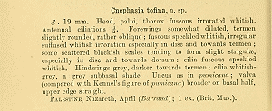 Amsel (1958: 70-71) hatte allerdings von 2 Exemplaren von Cnephasia tolli aus Zypern geschrieben: "Kyrenia, Februar und 6. 4. 1947. Zwei Exemplare von 17 mm Spannweite gehören zu dieser von Razowski aus Haifa beschriebenen Art." Nach deren Beschreibung des männlichen Genitals folgt noch eine Anmerkung zu einem dritten Exemplar - dieses aus "Abu Goasch" [Abu Gosch) bei Jerusalem in Israel - dieses, und nur dieses Exemplar meinte er, wenn er eine "ssp. palaestinensis" vorschlug. C. tofina (Nazareth), C. tolli (Haifa) und C. palaestinensis wurden also alle aus einem kleinen Bereich in der Nordhälfte Israels beschrieben, das andere Synonym - C. syriella aus dem nahen Syrien.