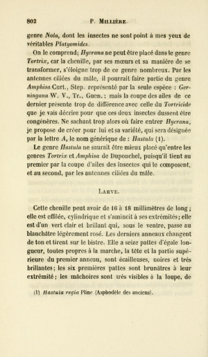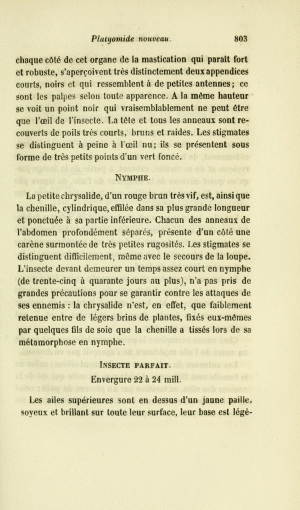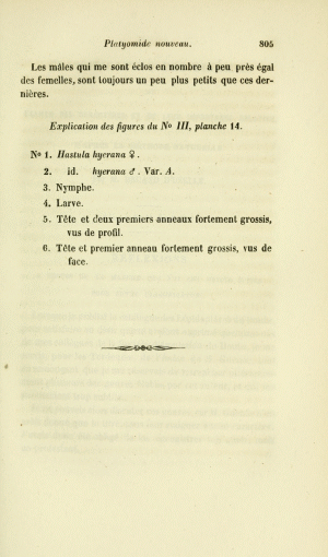 - Erstbeschreibung: Millière, P. (1857): Description d'un Platyomide nouveau et histoire des métamorphoses de sa larve. — Annales de la Société entomologique de France, Troisième Série 5: 799-805, pl. 14.