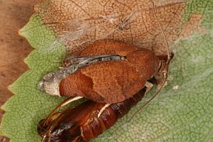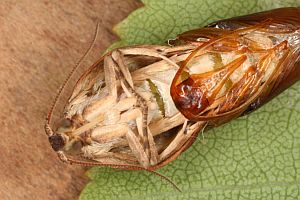 Gartner (1870: 71) ergänzte: "Bezüglich der Futterpflanzen habe ich zu berichten, dass ich am 9. Juni 1867 im Schreibwalde an Vaccinium Myrtillus zusammengesponnene Blätter wahrgenommen habe, welche abgenagt und hiedurch vertrocknet waren. Solche Nester waren mehrere vorhanden, doch mit Ausnahme eines einzigen, sämmtlich schon verlassen. Ich glaubte in der gefundenen Raupe eine T. cinnamomea Tr. erlangt zu haben, weil Vaccinium als ihre Futterpflanze angegeben wird, es entwickelte sich jedoch am 8. Juli daraus eine heparana."