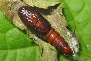 Die im Lepiforum gezeigten Raupen/ Puppen wurden an Malus domestica, Pyrus communis, Crataegus sp., Rosa sp., Betula pendula, Lonicera xylosteum und Ligustrum vulgare gefunden. Die Art soll mitunter schädlich an Obstgehölzen sein.