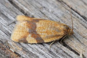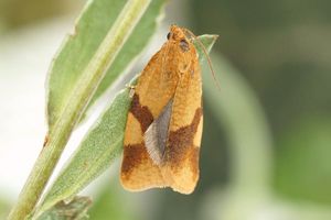 Von allen übersehen wurde offensichtlich die Notiz von Chrétien (1904: 151) im Vorfeld der Erstbeschreibung von Aproaerema linella: "Dans les feuilles attachées ensemble du Linum narbonense, j’ai d’abord trouvé en avril une chenille de tordeuse, d’un vert sombre, noirâtre, avec des verruqueux clairs ou blanchâtres, et la tête fauve, qui m’a donné Eulia (Tortrix) ochreana Hb."