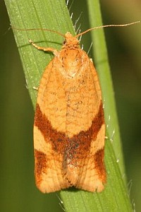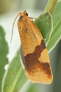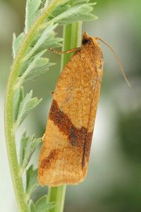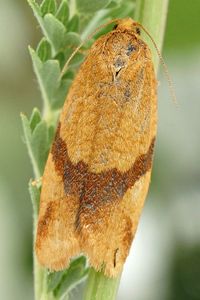 Auch der Text von Kennel (1910: 162) zur Raupe von "Tortrix ochreana Hb." fällt recht kurz aus: "Die Raupe ist dunkel olivgrün, mit feinen schwarzen Wärzchen; der Kopf ist braun, hinten schwarz. Nackenschild schwarz. Sie lebt im April und Mai an niederen Pflanzen, z. B. Anemone pulsatilla (nach Mann)."