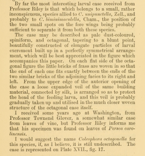 - Erstbeschreibung: Walsingham (1882): North American Coleophorae. — The Transactions of the Entomological Society of London for the Year 1882 (3): 429-442, pl. XVII.