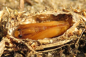 Im Jargon des Schädlingsbekämpfers auf [schaedlingskunde.de] klingt das weniger schön: "Samenmotten werden gleichzeitig zu den vorratsschädlichen Insekten wie auch zu den Materialschädlingen gezählt. Sie können sowohl pflanzliche, als auch tierische Produkte befallen, die aufgrund falscher Lagerungsbedingungen feucht geworden sind. Die Larven der Samenmotte werden zum Beispiel an Mais, Gries, Getreide, Haferflocken, Mehl oder Hülsenfrüchten gefunden. Aber auch Leder, Wolltextilien, Bucheinbände und Polsterstoffe werden befallen. Aufgrund ihrer Fähigkeit sich von Keratin zu ernähren sind die Larven von Hofmannophila pseudospretella in der Lage sich auch in entsprechenden Materialien tierischer Herkunft zu entwickeln."