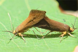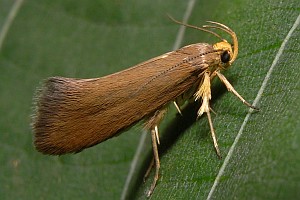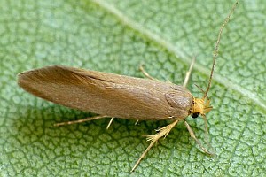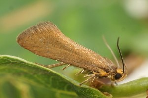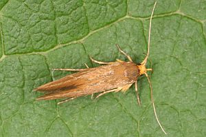 2. Farbunterschied Kopf - Thorax: Crassa tinctella - Kopf und Thorax gleichfarbig, Crassa unitella - Kopf kontrastiert mit Orangegelb zum Thorax