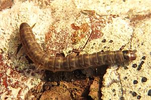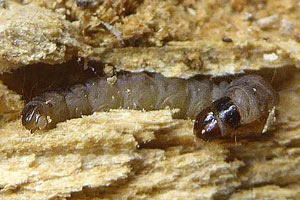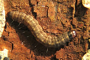 1: Deutschland, Baden-Württemberg, Raupe an Holz bei Altvogtsburg gefunden am 12. April 2009 (Foto: Gabi Krumm), det. Helmut DeutschForum