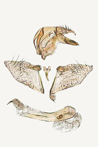1: ♂, Schweiz, Bern, St.-Petersinsel, 430 m, 5. August 2009 (leg., gen. det. [GP Nr. 2020-232] & Foto: Rudolf Bryner), Referenz Tokár et al. (2005: Nr. 80)