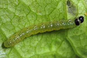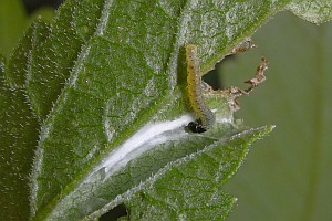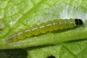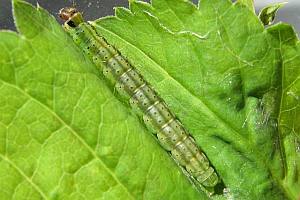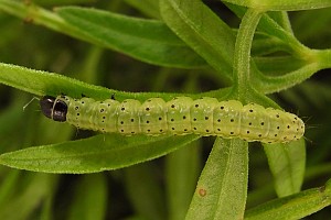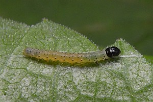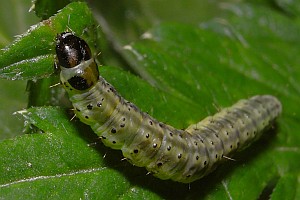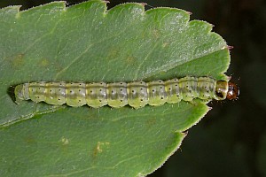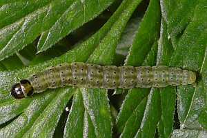 Körper wie bei A. ciliella: grün mit schwarzen Punktwarzen. Die dunkleren Rücken- und Nebenrückenlinien sind nur bei frisch gehäuteten Raupen deutlich ausgeprägt, sonst sehr verwaschen bis erloschen. (Text: Rudolf Bryner)
