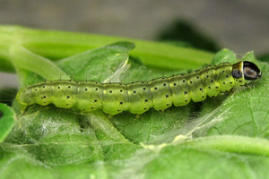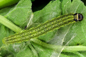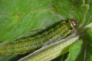 Körper wie bei A. heracliana: grün mit schwarzen Punktwarzen. Die dunkleren Rücken- und Nebenrückenlinien sind aber meist deutlicher als bei A. heracliana.