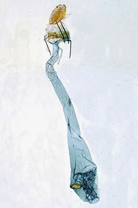 5-6: Deutschland, Thüringen, Umg. Jena-Göschwitz, in Gespinströhre an Stängelloser Kratzdistel (Cirsium acaule), 19. Juni 2011 (leg., cult., det. & Fotos: Heidrun Melzer)