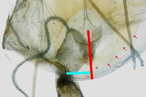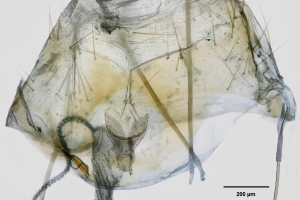 4-7: ♀, Genitalpräparat, schwimmend, gefärbt mit Chlorazol, Signum, achtes Sternit: Spanien, Lanzarote, Haria, Finca La Fuentecilla, Ortsrand, kultivierte Trockensteppe, 340 m, 25. Februar 2020, am Licht (leg., prep. & fot.: Hartmuth Strutzberg), gen. det. Peter BuchnerForum