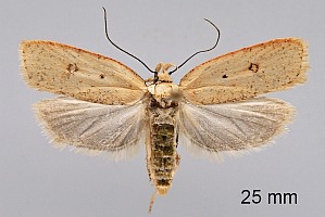 - Erstbeschreibung: Wocke, M. F. (1887): Zwei neue Gelechiden. — Zeitschrift für Entomologie. Neue Folge 12: 62-64. Breslau (Maruschke & Berendt).