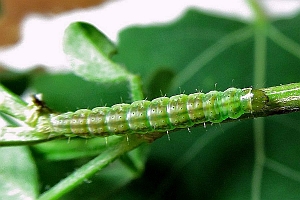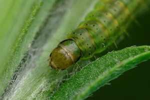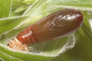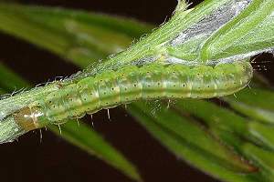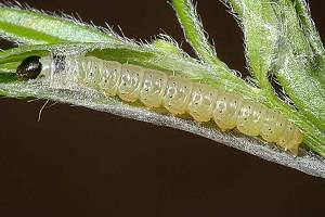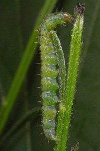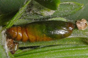 Bei A. scopariella überwintert der Falter und legt im Frühling die Eier. Die Räupchen spinnen sich nach dem Schlüpfen ein Gehäuse mit den frischen, grünen Blättchen des Ginsters. Die Raupen sind in der Jugend hellgrün mit schwarzen Kopf und schwarzer Nackenplatte. (Text: [Rudolf Bryner])
