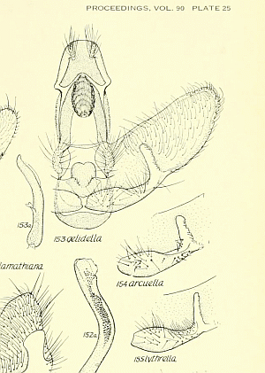 • Beschreibung als Agonopterix arcuella: Clarke, J. F. G. (1941): Revision of the North American moths of the family Oecophoridae, with descriptions of new genera and species. — Proceedings of the United States National Museum 90 (3107): 33-286, pl. 1-48.