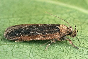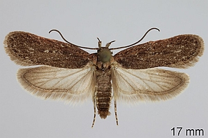 1: 8 mm, ♀: Österreich, Niederösterreich, 1,5 km N Schwarzau am Steinfeld, lichtungs- und laubholzreicher Schwarzföhrenforst, leg. Raupe zwischen 2 aufeinandergesponnenen Blättchen von Kleiner Bibernelle (Pimpinella saxifraga) 22. Mai 2008 (Foto am 1. Juni 2008: Peter Buchner), leg. & cult. Peter Buchner, det. durch GU Rudolf BrynerForum