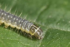 4: 11 mm, noch nicht erwachsen, Österreich, Niederösterreich, Puchberg am Schneeberg, leg. Raupe in versponnenem Blütenstand von Großer Bibernelle (Pimpinella major) 17. Juli 2011, Foto vom 25. Juli 2011 (Foto: Peter Buchner), leg., cult. & det. Peter Buchner