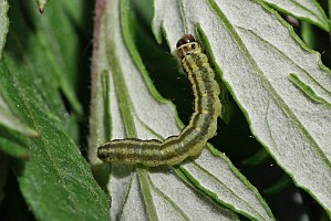Rymarczyk et al. (2015) zeigen neben einer Raupe an Achillea millefolium aus den französischen Alpen auch eine (von diversen gefundenen) von Tanacetum vulgare aus den östlichen Pyrenäen. Sie vermuten, dass die Art in Frankreich auch noch an Artemisia campestris gefunden werden könnte, da diese Pflanze von anderen Autoren genannt würde - die entsprechende Quelle ist mir noch nicht bekannt, und möglicherweise handelt es sich um eine Verwechslug mit der tatsächlich gut belegten Artemisia vulgaris.