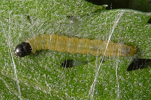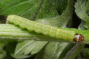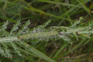 In der Literatur wird als Raupennahrungspflanze nur Schafgarbe (Achillea millefolium) genannt. Weitere häufig genutzte Nahrungspflanzen sind Rainfarn (Tanacetum vulgare) und Straußblütige Wucherblume (Tanacetum corymbosum) sowie gelegentlich Greiskraut (Senecio). Vereinzelte Raupenfunde an Kälberkropf (Chaerophyllum) in Sachsen bedürfen der weiteren Beobachtung und Verifizierung.