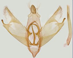 1: Präparat des unter Diagnosefoto 1 abgebildeten ♀, Russland, Sutschan, leg. Dörries 1915 (coll. MFN, Präparation, det. & Mikrofoto: Peter Buchner)