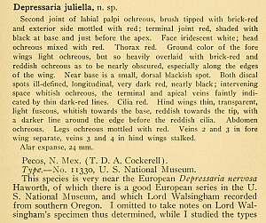 - Erstbeschreibung: Busck, A. (1908): Descriptions of North American Tineina. — The Transactions of the Entomological Society of London 9 (1-4): 91 [Digitalisat auf archive.org]