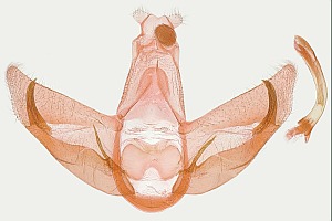 1: Präparat des unter Diagnosefoto 1 abgebildeten ♂, Japan, Kyushu, Kagoshima Ken, Satamiskai, 19. Mai 1970 (leg. & det.: Y. Arita, coll. ZMUC Kopenhagen, Präparation & Mikrofoto: Peter Buchner)