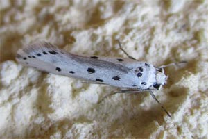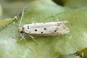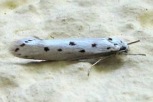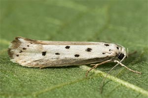 Ähnlich wie Ethmia dodecea, von dieser aber unter anderem sofort durch die schwarzen Saumpunkte am Außenrand der Vorderflügel zu unterscheiden. Bei oberflächlicher Betrachtung kann die Art auch mit den weißen oder grauen Gespinstmotten (Yponomeuta) verwechselt werden.