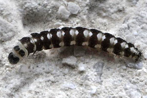 Wichtige Anmerkungen von Rudolf Bryner zur Bestimmung von Raupe 1: Einzige mir bekannte Abbildungen finden sich im Spuler Raupenband (1) und bei Friese G., 1973: Beiträge zur Insektenfauna der DDR: Lepidoptera - Ethmiidae. Die Raupenbeschreibung dort lautet: "Grundfarbe samtartig braun mit weissen Rücken- und Seitenflecken, auch die Segmentfalten weiss. Kopf und Nackenschild schwarz." [vollständiger Forumsbeitrag von Rudolf Bryner].