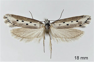 Hinweis: ein bis zum 30. Januar 2020 hier gezeigtes [Präparat] wurde zu Ethmia quadrinotella verschoben: [Korrektur].