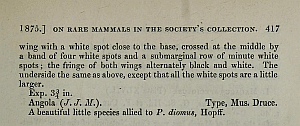 - Erstbeschreibung: Druce, H. (1875): A List of the Collection of Diurnal Lepidoptera made by Mr. J. J. Monteiro, in Angola, with Descriptions of some new Species. — Proceedings of the Scientific Meetings of the Zoological Society of London for the Year 1875: 406-417.