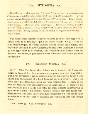- Erstbeschreibung: Guenée, A. (“1857”) [1858]: Histoire naturelle des Insectes. Species général des lépidoptères 10. Uranides et Phalénites. Tome II: 1-584. Paris (Roret).