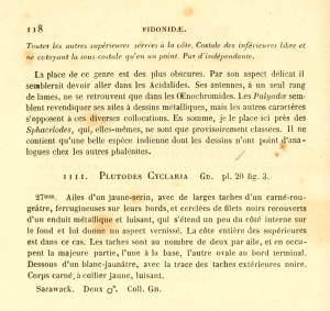 - Erstbeschreibung: Guenée, A. (“1857”) [1858]: Histoire naturelle des Insectes. Species général des lépidoptères 10. Uranides et Phalénites. Tome II: 1-584. Paris (Roret).