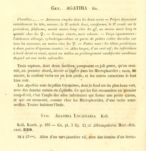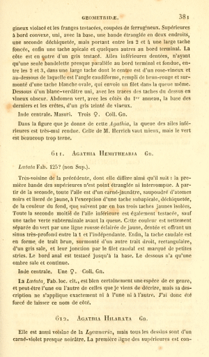 - Erstbeschreibung: Guenée, A. (“1857”) [1858]: Histoire naturelle des Insectes. Species général des lépidoptères 9. Uranides et Phalénites. Tome I: I-LVI, 1-515. Paris (Roret).