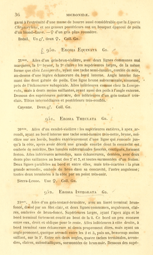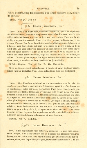 - Erstbeschreibung: Guenée, A. (“1857”) [1858]: Histoire naturelle des Insectes. Species général des lépidoptères 10. Uranides et Phalénites. Tome II: 1-584. Paris (Roret).