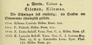 - Erstbeschreibung: Hübner, J. [1816-1826] („1816“): Verzeichniß bekannter Schmettlinge [sic]: 1-431, 1-72. Augsburg.
