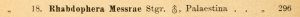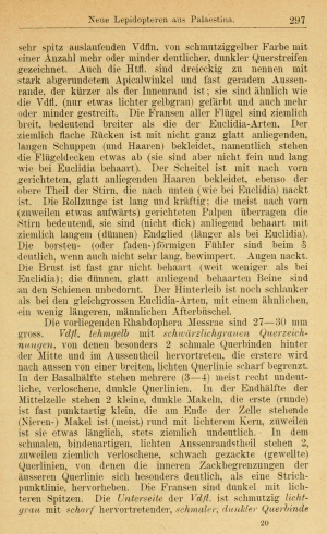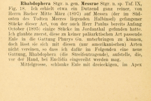 - Erstbeschreibung: Staudinger, O. (1898): Neue Lepidopteren aus Palaestina. — Deutsche Entomologische Zeitschrift Iris 10 (2): 271-319, pl. IX.