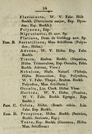 - Erstbeschreibung: Ochsenheimer, F. (1816): Die Schmetterlinge von Europa 4: V-X, [11]-225. Leipzig (Gerhard Fleischer der Jüngere).