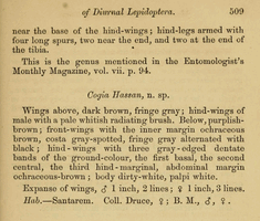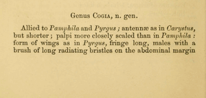 - Erstbeschreibung: Butler, A. G. (1870): Descriptions of some new Diurnal Lepidoptera, chiefly Hesperiidae. — The Transactions of the Entomological Society of London for the Year 1870 (4): 485-520. [Digitalisat auf biodiversitylibrary.org]