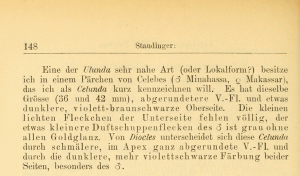- Erstbeschreibung: Staudinger, O. (1889): Lepidopteren der Insel Palawan. — Deutsche Entomologische Zeitschrift Iris 2: 3-180, pl. I-II.
