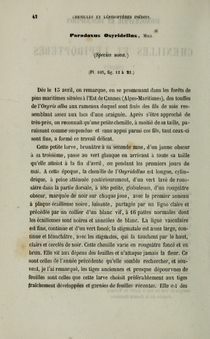 - Erstbeschreibung: Millière, P. (1869): Iconographie et description de chenilles et lépidoptères inédits 3 (24): 41-80 + pl. 105-108. Paris (F. Savy).
